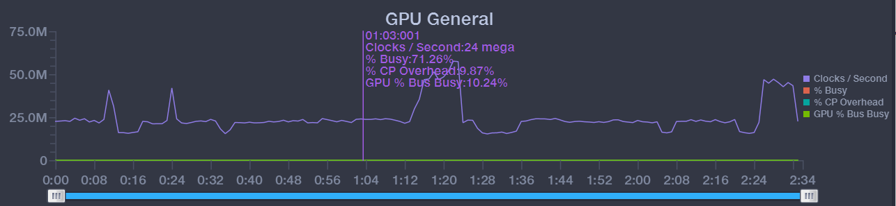 In the past, many counters appeared too smooth, lacking the necessary fluctuations to identify performance trends. Take a look at the GPU General chart below: